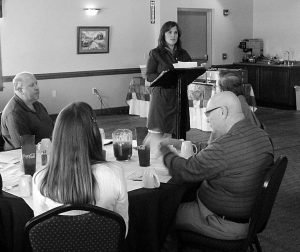 Pictured: Project Manager Carol Cain-Bush of Woodlands Development Group speaks during a recent gathering for local professionals involved in home ownership. The meeting took place March 7 at the Railyard Restaurant in downtown Elkins.